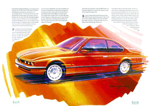 Poniewaz nigdy nie bylo jeszcze zadnej niemieckiej ksiazki o 6tce, zebralismy przez wiele lat w drobnych grupach duzy material o tym eleganckim coupe BMW, ze tak powiem BILIE 6tki dla fanow E24. Dane tej wazacej 4kg ksiegi: 408stron w duzym formacie 25x35x4cm) na 200 gramowym papierze, kolory, pojedyncze tabele, nigdy nie widziane detale, opisy prototypow i schematy, wiekszosc nigdy nie zaprezentowanych, pojedyncze statystyki 6tek, zaleznosci historyczne i rysunki, Zdjecia prospektowe, takze z zagranicy, schematy przekrojowe, oceny Zurnalistow itd.... Ta ktonika ostatecznie ukazuje ktore auto jest Karmanem 6CS CS/1 czy CS/2. Wszystkie detale sa trak ukazane aby rozwiac wszelkie watpliwosci. Takze uwazajacym sie za expertow w dziedzinie E24 moglismy zapoferowac wiele nowinek.