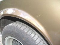 Tak w skrócie przypomnę, iż zacząłem od pozbycia się szpachli z tylniego lewego błotnika przy pomocy młotka i przecinaka.