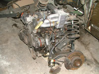 przednich kół, części osprzętu silnikowego oraz odkręceniu maski, wału napędowego, skrzyni biegów i przedniej belki od nadwozia