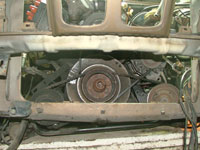 przednich kół, części osprzętu silnikowego oraz odkręceniu maski, wału napędowego, skrzyni biegów i przedniej belki od nadwozia